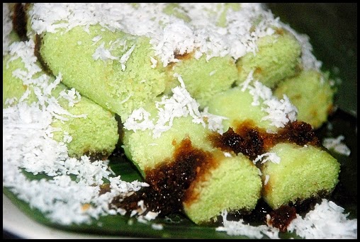Itu lho yang biasa dijual di sepeda. Lalu di sepedanya ada bunyi “ngiuuuuung…” Biasanya lewat di depan rumah setiap sore atau habis maghrib hehe. Mungkin depan rumahmu ada juga. Bentuknya bulat, panjang, warna hijau muda. Isinya gula merah. Paling enak dimakan pas hangat-hangat dengan taburan parutan kelapa. Hmm yummy 😋