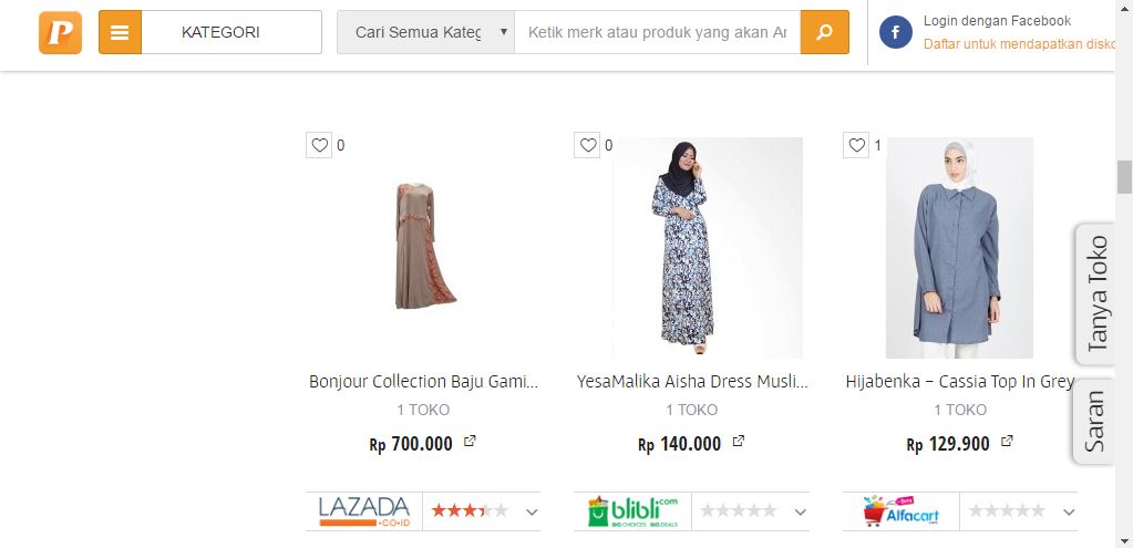 Sangat disayangkan memang, kebanyakan dari kita masih mengeluh tanpa mau memberi solusi. Makanya, sejujurnya saya suka sedih dengan muslimah yang belum mau berhijab lantaran mengeluhkan harga hijab yang cenderung mahal. Padahal, kalau mau sedikit berusaha, banyak kok online shop yang menawarkan harga yang tidak (terlalu) mahal. Tinggal kitanya saja yang pintar-pintar mencari perbandingan. Misalnya di website Priceza. Di sana kita bisa mencari perbandingan harga dari satu online shop ke satu online shop lainnya.