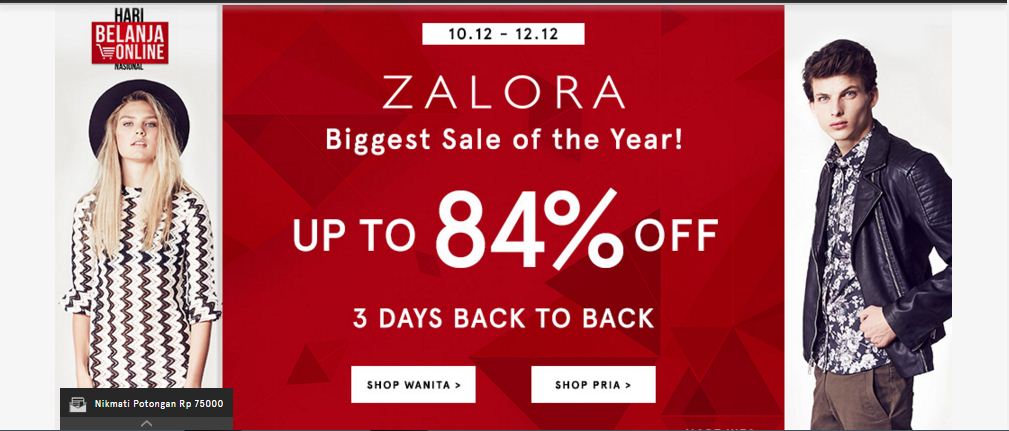 Sale 1212 bukan hanya sekedar pehelatan biasa, namun bertujuan untuk mengedukasi masyarakat tentang kemudahan belanja online secara aman dan nyaman serta dapat dilakukan kapanpun dan dimanapun. Kampanye ini di gelar dengan misi memajukan Industri E-commerce Indonesia. Maka dari itu, jika kamu mencari pesta diskon besar, besaran festival Hari Belanja Online Nasional yang sering disebut HarBolNas yang merupakan ajang memberikan penawaran yang terbaik dan bisa kamu jadikan sebagai peluang yang tepat untuk mendapatkan obral berbelanja. Hari Belanja Online Nasional menawarkan diskon yang sangat fantastis dan banyak sekali produk fashion terkenal dari dalam maupun luar negeri khusus untuk Customer pecinta Online shop di Indonesia. – Zalora