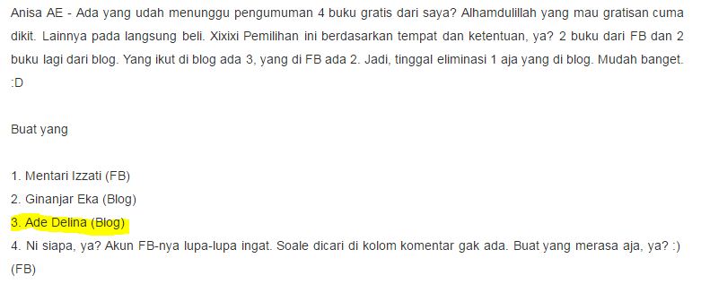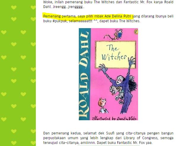 - Resensi buku 1 , 2 , 3 , 4 , 5 , 6 , 7 , 8 , 9 , 10 , 11 – GA #31HariBerbagiBacaan (Resensi terbanyak)
