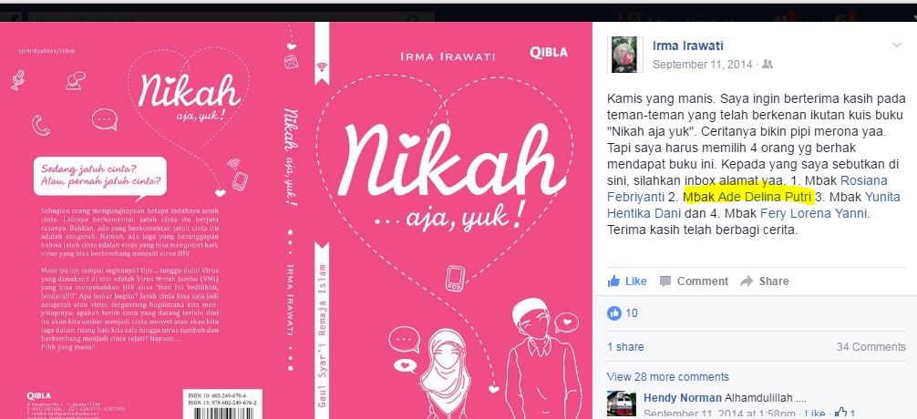 - First VMJ – Kuis Buku Nikah Aja, Yuk! (Artikel terbaik)
