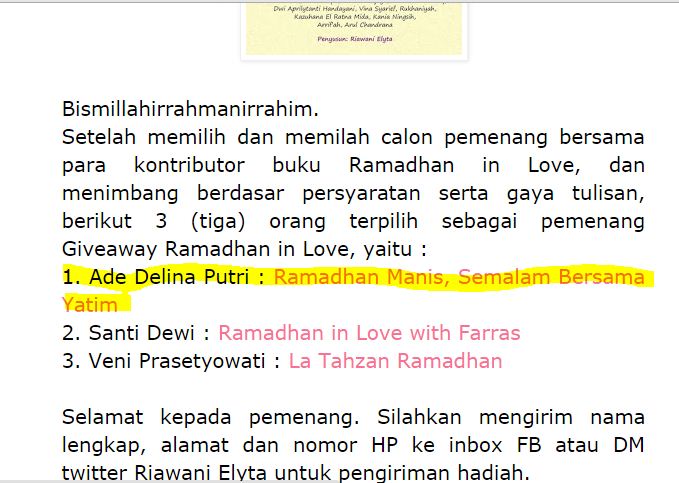 - Ramadhan Manis, Semalam Bersama Yatim – Giveaway Ramadhan In Love (Artikel terbaik)