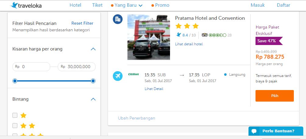 Wa gampang banget ya. Jadi pesan tiket pesawat sudah sekaligus pesan hotel dalam satu paket. Jadi enggak nyari-nyari lagi ya. Traveloka memang oke banget. Aku juga beberapa kali pesan hotel lewat traveloka loh.