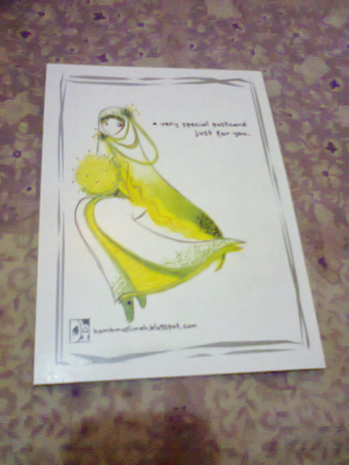 | ada buku, kartu pos, kartu nama Kak Dhiba |